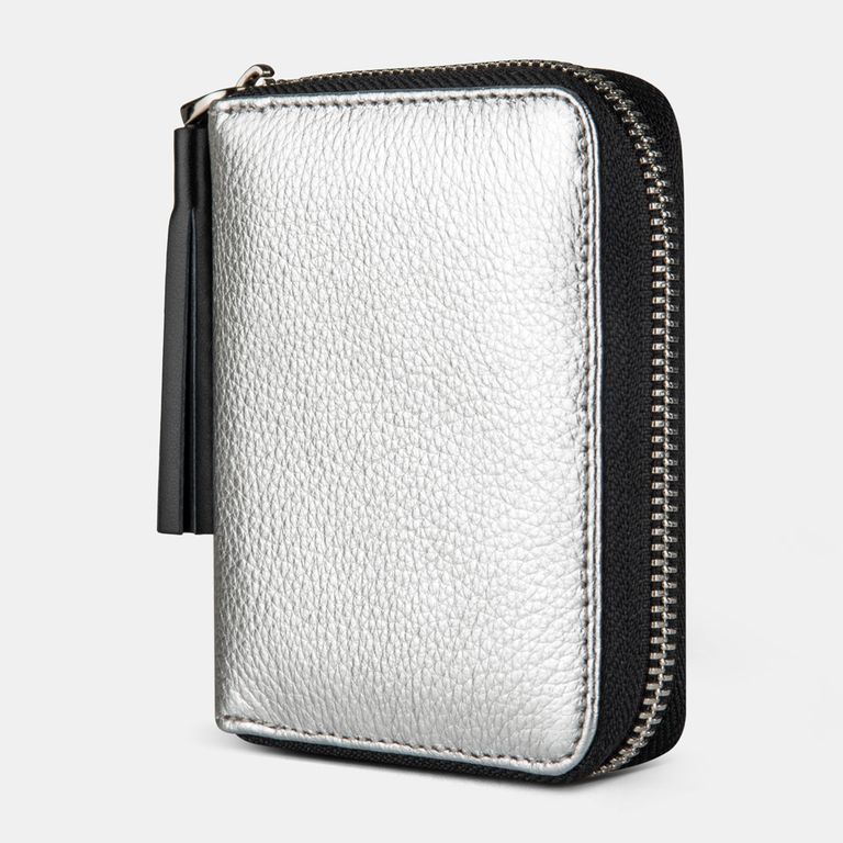 Стильный женский кошелек с кистью и комфортным полным открыванием. В интерьере изделия предусмотрены отделение для банкнот, карт и кармашек на кнопке для мелочи. Данный аксессуар отлично поместится в небольшую женскую сумку за счет скромных размеров.