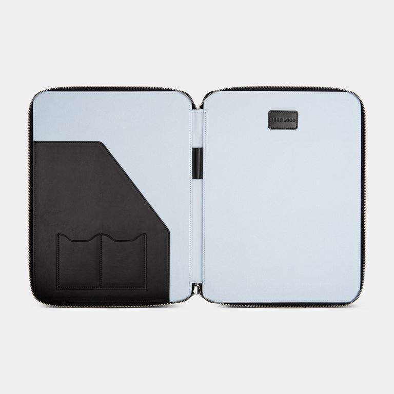 Стильная папка для документов идеально подойдет для конференций и деловых переговоров. В папке найдется место для бумаг формата А4, визиток и прочих документов. Также в ней предусмотрены петелька для ручки, внешний карман на молнии и нашивка для вашего логотипа.
